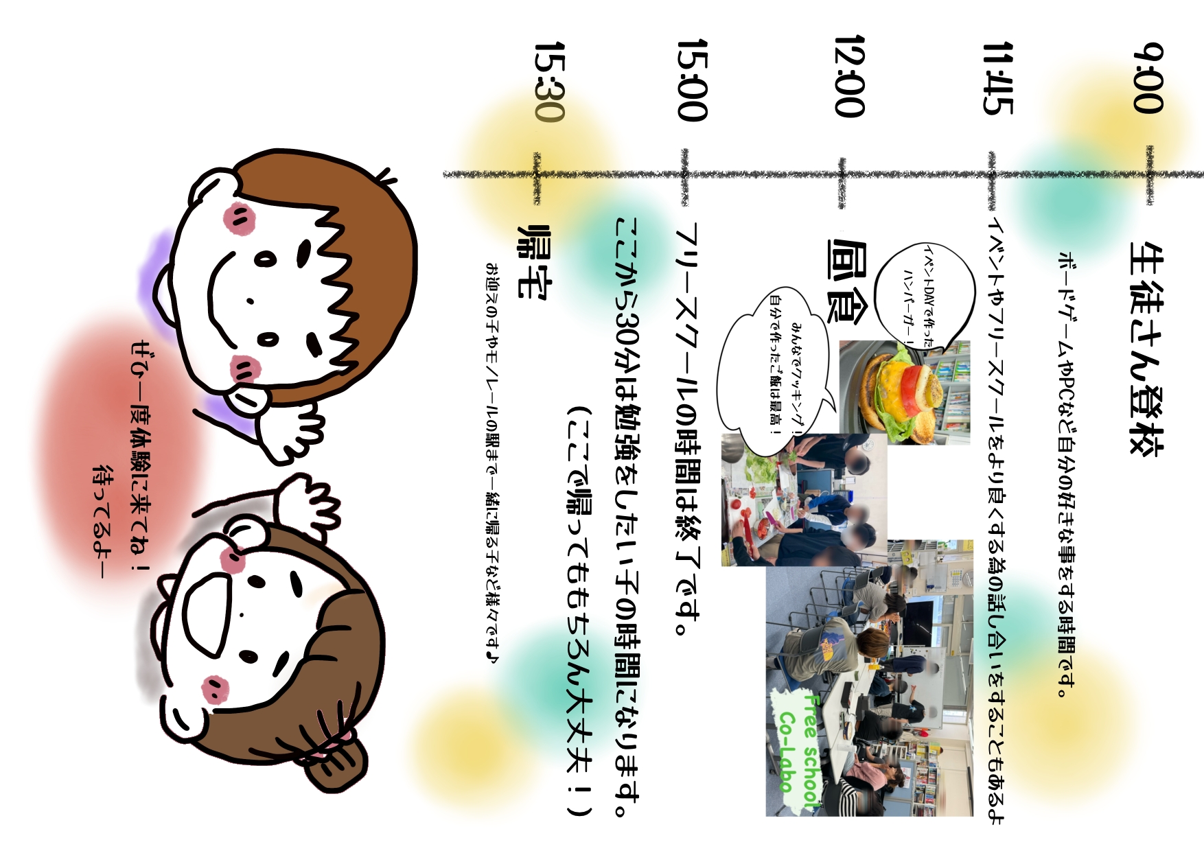 フリースクールとは、何らかの理由から学校に行くことができない、行かない、行きたくても行けない・・・という子供たちが、小学校・中学校・高校の代わりに過ごす場所です。